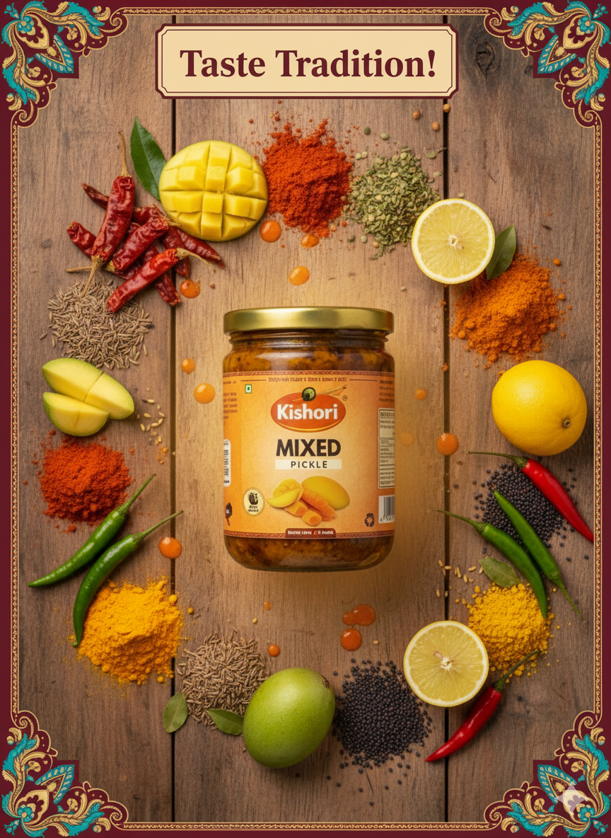 Kishori Food Products brings you the authentic taste of Indian tradition with a range of homemade-style pickles, murabba, and candies. Prepared with handpicked ingredients and age-old recipes, our products carry the flavor of purity, care, and home-cooked goodness. We believe in serving not just food, but memories of Indian kitchens, filled with love and taste that lasts.
