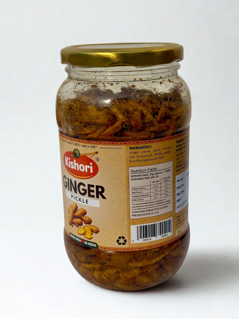 Experience the bold and authentic taste of India with Kishori Food Products Ginger Pickle (Adrak ka Achar). Made from fresh ginger roots, premium mustard oil, and a blend of traditional Indian spices, this pickle is the perfect mix of taste and health.